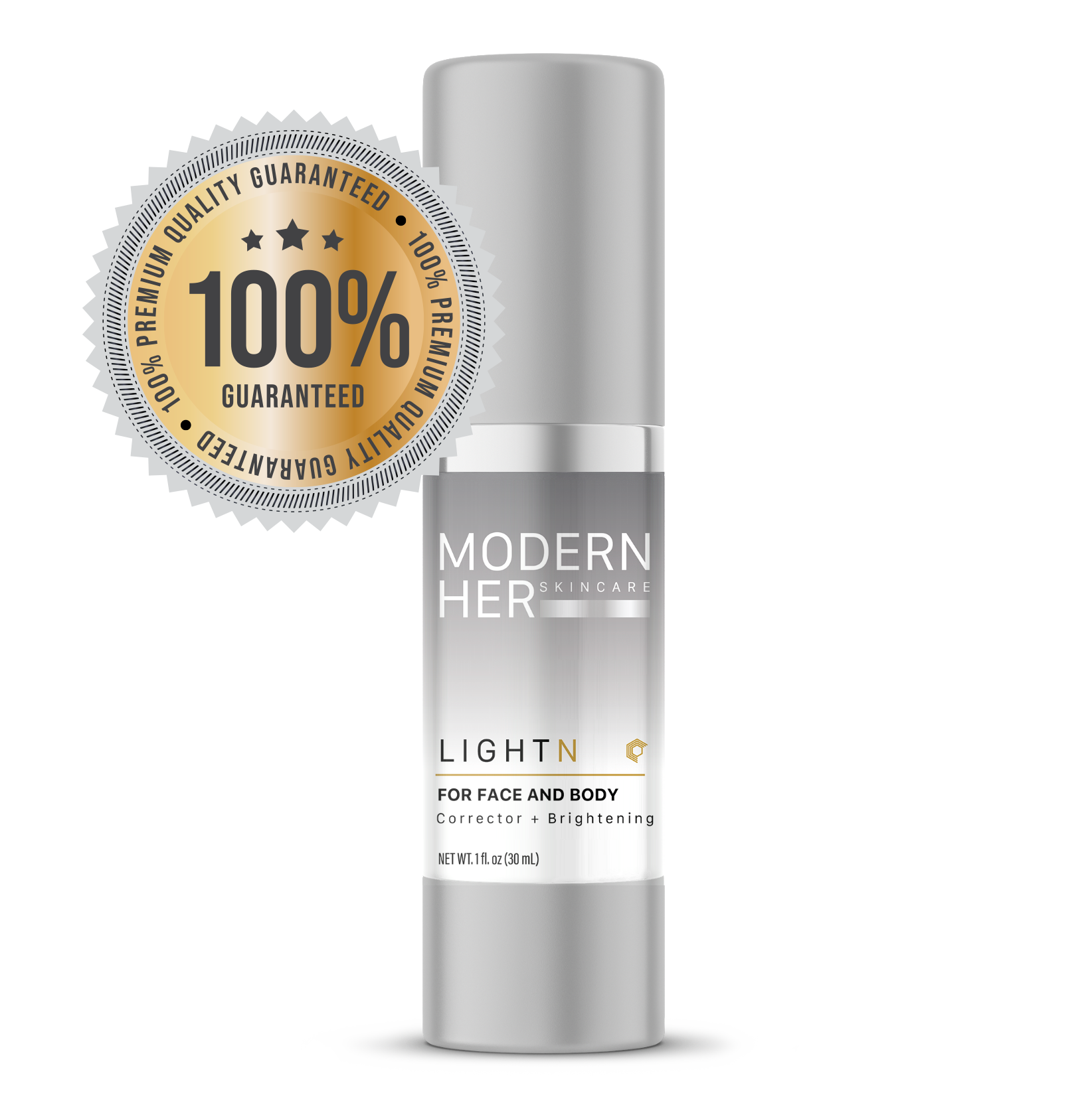 We always want you to feel secure and confident when you order from ModernHer. That is why we've gone above and beyond to offer you a 90-day guarantee on all of our products including our LIGHTN Dark Spot Corrector today.